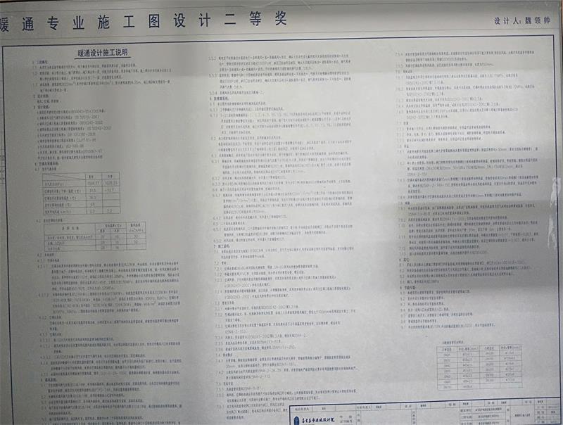 上圖為暖通專業(yè)二等獎獲得者 魏領帥 參選施工圖
